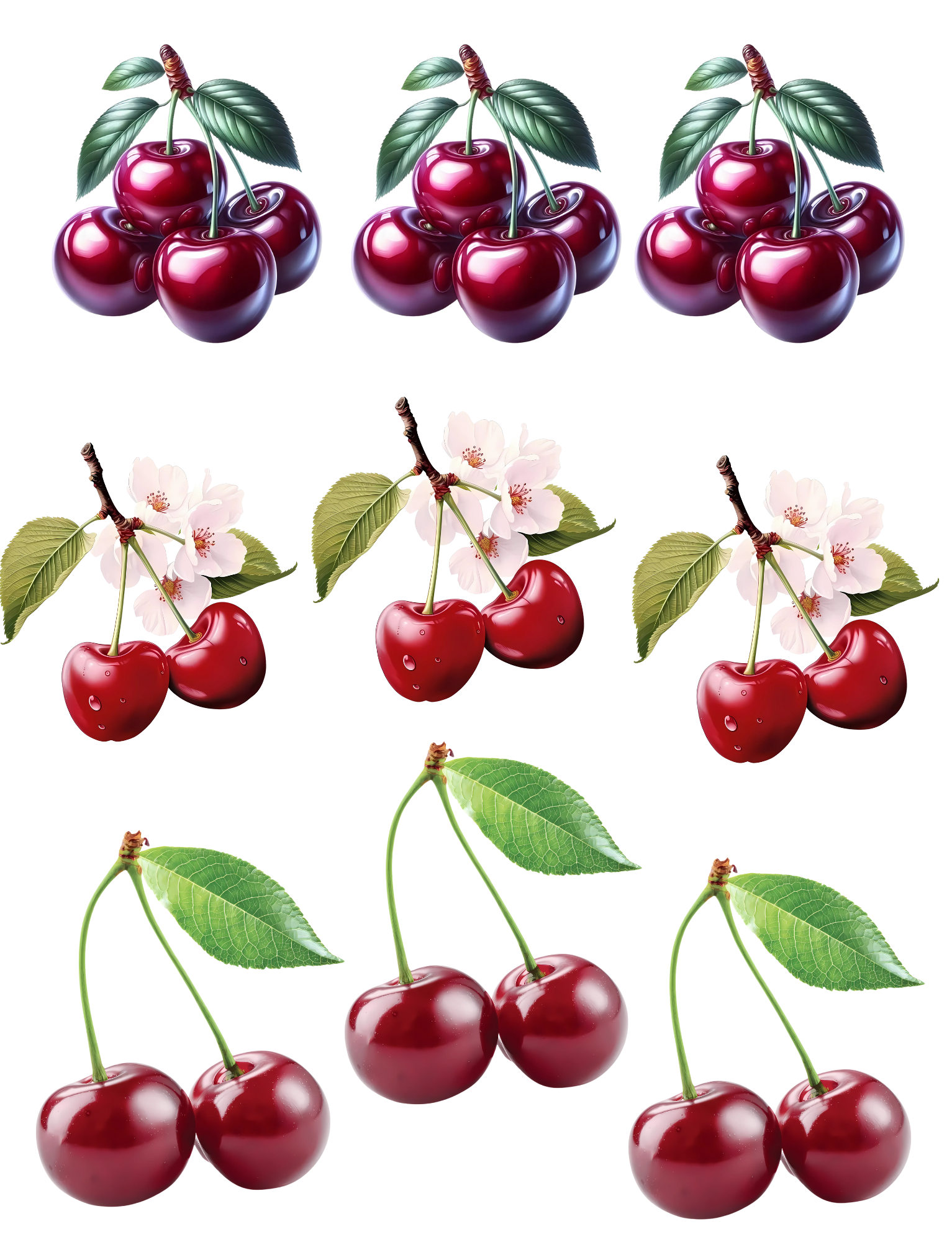 Decalque Hidro Transfer - Cerejas Grandes - Coleção artebrentan - Indicado para aplicação sobre, louças, vidros, latas, madeira, plastico, necessário acabamento com verniz de acordo com o projeto.