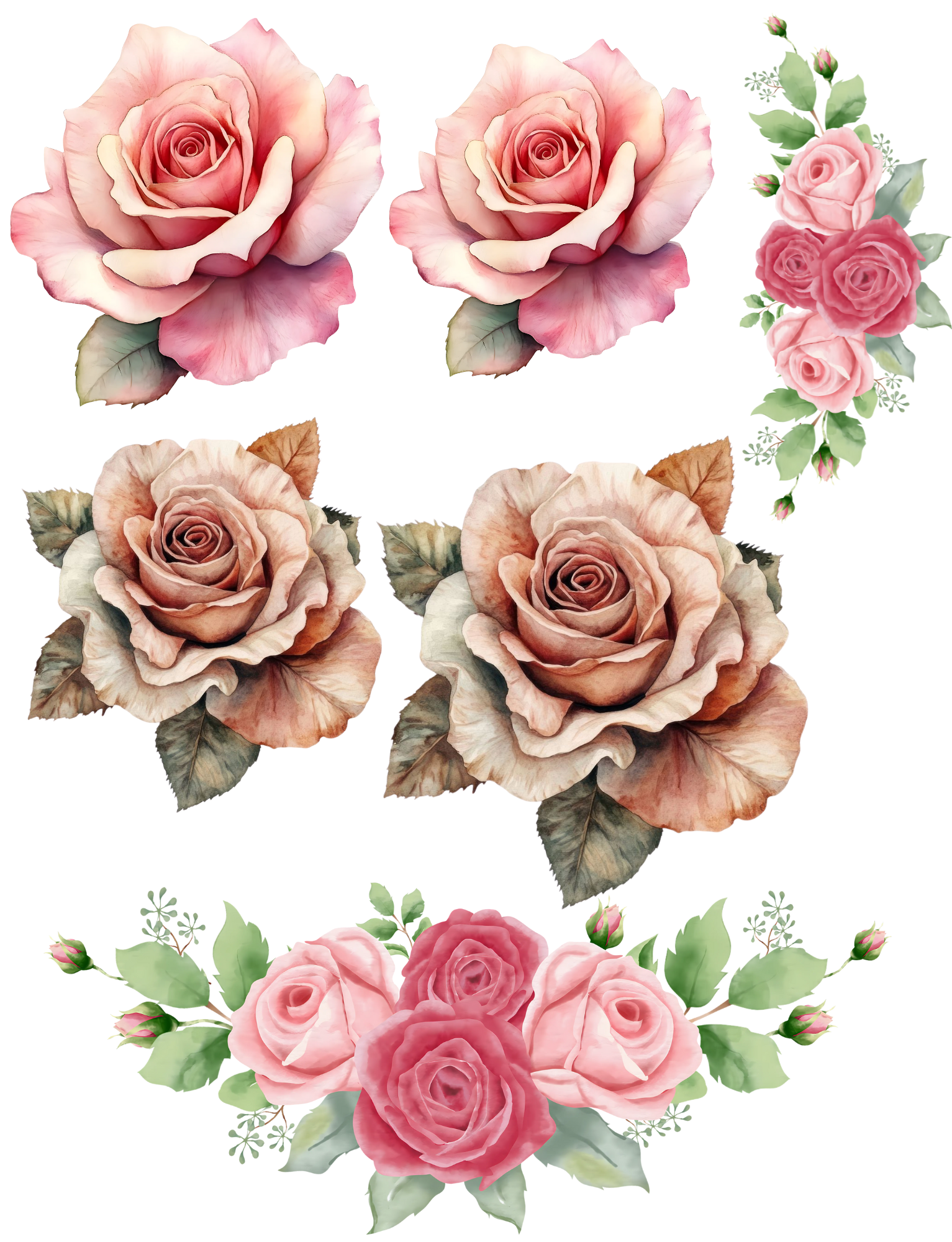 Hidro Transfer - Decalque - Rosas Grandes I - Coleção artebrentan - Indicado para trabalhos em louças, metais, madeira e plástico, necessita de acabemento com verniz, de acordo com o seu projeto.