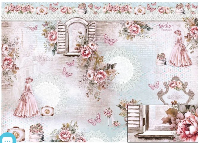 Papel de Seda - PSL-011 - Litoarte - tamanho 67,5cmx46cm - Coleção Meu Sonho Vintage - Ideal para trabalhos de decoupage.