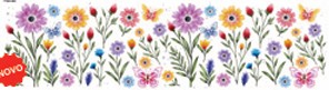 Transfer Têxtil TTB4-065 - Barrado Campo de Flores - litoarte - Indicado para aplicação em tecido, como barrados de toalhas , tamanho 24cmx7cm