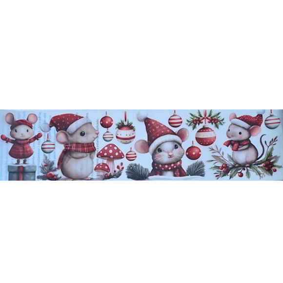 Transfer Têxtil TTB4N-009 - Barra Natal Ratinhos - Tamanho 24cx7cm